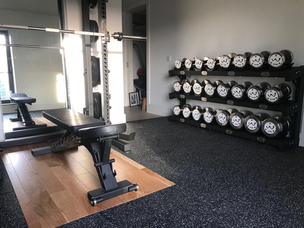 We were faced with quite the ambitious task, the client wanted a full gym in his spare bedroom. On the wishlist was the Watson Animal Dual Adjustable Pulley with Micro Adjuster, StairMaster HIIT Bike, Watson Pro Dumbbells, Watson Adjustable Bench and enough room for floor workouts and yoga. After managing to piece together a functional and stylish space, there was one piece of kit that wouldn’t quite fit without blocking the door and that of course was the feature Dumbbell rack. The rack came out so far that it blocked half the entrance.